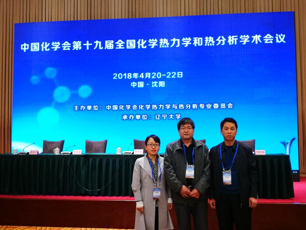 2018年4月20-22日,由中国化学会化学热力学与热分析专业委员会主办,辽宁大学承办的中国化学会第十九届全国化学热力学和热分析学术会议在辽宁省沈阳市辽宁友谊宾馆召开。中国科学院化学研究所韩布兴院士、辽宁大学潘一山校长出席开幕式并致辞。本次会议以化学热力学与热分析在材料、能源、环境和生物医学中的应用为主题,全面展示化学热力学与热分析领域的最新进展及成果,会议交流形式包括大会特邀报告、分会邀请报告、口头报告、青年学者论坛、墙报展讲。来自国内外100余所院校及科研机构的600余名代表出席了本次会议。陕西省化学反应工程重点实验主任高楼军教授和研究骨干任宜霞教授、侯向阳副教授应邀参加会议,并与参会学者作了广泛交流。