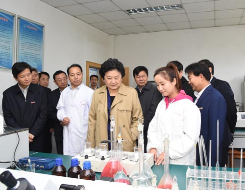上午9时,刘延东副总理来到我校bt365在线视察,化工学院教授付峰、院长张琰图和化学反应工程重点实验室负责人高楼军迎候,付峰教授向刘延东副总理介绍了实验室的建设情况。刘延东副总理询问了我校2015级研究生刘佳琦、王浩关于研究项目的问题;询问了化工学院学生规模、研究生规模及教职工规模;询问了2014级本科生杨晓关于实验项目、实验方向、药品试剂的问题。学院相关负责人和学生都一一进行了回答。